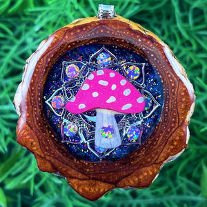 Our handmade pendants are crafted from sustainably wild-gathered Knobcone Pinecones. Every Aura Pinecone is carefully dried, aged, and cross-sectioned before being meticulously designed.