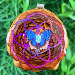 Our handmade pendants are crafted from sustainably wild-gathered Knobcone Pinecones. Every Aura Pinecone is carefully dried, aged, and cross-sectioned before being meticulously designed.