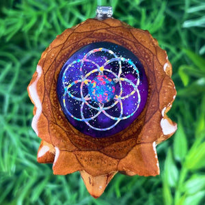Our handmade pendants are crafted from sustainably wild-gathered Knobcone Pinecones. Every Aura Pinecone is carefully dried, aged, and cross-sectioned before being meticulously designed.