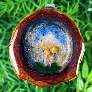 Our handmade pendants are crafted from sustainably wild-gathered Knobcone Pinecones. Every Aura Pinecone is carefully dried, aged, and cross-sectioned before being meticulously designed.