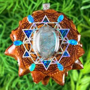 Our handmade pendants are crafted from sustainably wild-gathered Knobcone Pinecones. Every Aura Pinecone is carefully dried, aged, and cross-sectioned before being meticulously designed.