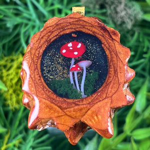 Our handmade pendants are crafted from sustainably wild-gathered Knobcone Pinecones. Every Aura Pinecone is carefully dried, aged, and cross-sectioned before being meticulously designed.