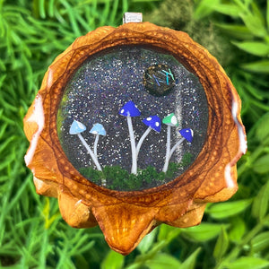 Our handmade pendants are crafted from sustainably wild-gathered Knobcone Pinecones. Every Aura Pinecone is carefully dried, aged, and cross-sectioned before being meticulously designed.