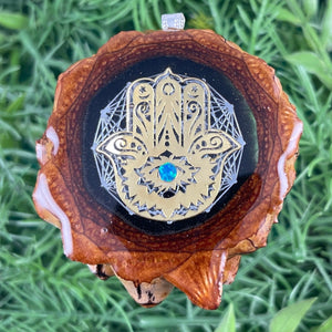 Our handmade pendants are crafted from sustainably wild-gathered Knobcone Pinecones. Every Aura Pinecone is carefully dried, aged, and cross-sectioned before being meticulously designed.