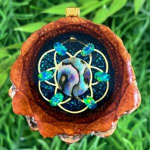 Night Sky with Dichroic Glass & Opal with Seed of Life