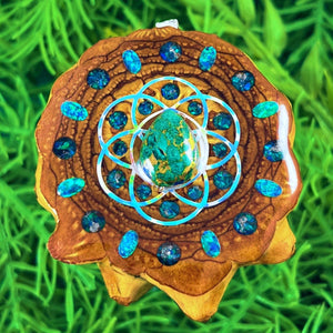 Our handmade pendants are crafted from sustainably wild-gathered Knobcone Pinecones. Every Aura Pinecone is carefully dried, aged, and cross-sectioned before being meticulously designed.