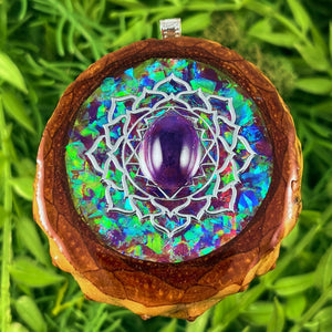 Our handmade pendants are crafted from sustainably wild-gathered Knobcone Pinecones. Every Aura Pinecone is carefully dried, aged, and cross-sectioned before being meticulously designed.