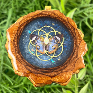 Our handmade pendants are crafted from sustainably wild-gathered Knobcone Pinecones. Every Aura Pinecone is carefully dried, aged, and cross-sectioned before being meticulously designed.