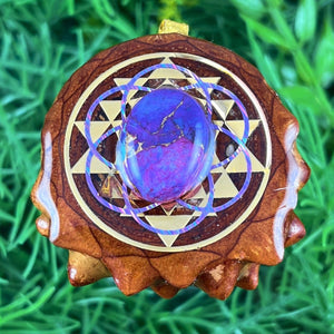 Our handmade pendants are crafted from sustainably wild-gathered Knobcone Pinecones. Every Aura Pinecone is carefully dried, aged, and cross-sectioned before being meticulously designed.