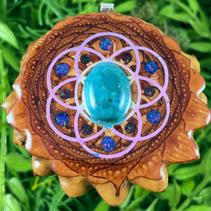 Our handmade pendants are crafted from sustainably wild-gathered Knobcone Pinecones. Every Aura Pinecone is carefully dried, aged, and cross-sectioned before being meticulously designed.