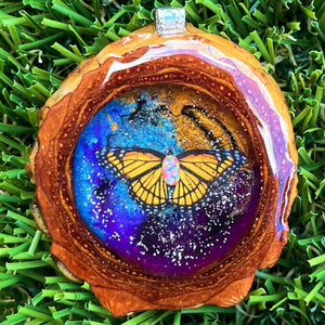 Our handmade pendants are crafted from sustainably wild-gathered Knobcone Pinecones. Every Aura Pinecone is carefully dried, aged, and cross-sectioned before being meticulously designed.