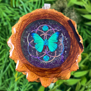 Our handmade pendants are crafted from sustainably wild-gathered Knobcone Pinecones. Every Aura Pinecone is carefully dried, aged, and cross-sectioned before being meticulously designed.