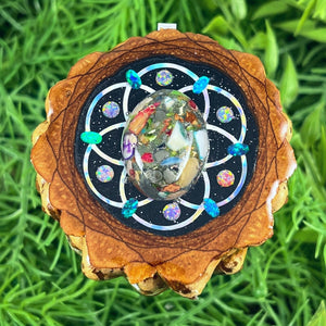 Our handmade pendants are crafted from sustainably wild-gathered Knobcone Pinecones. Every Aura Pinecone is carefully dried, aged, and cross-sectioned before being meticulously designed.