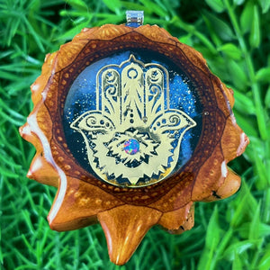 Our handmade pendants are crafted from sustainably wild-gathered Knobcone Pinecones. Every Aura Pinecone is carefully dried, aged, and cross-sectioned before being meticulously designed.