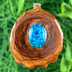 Our handmade pendants are crafted from sustainably wild-gathered Knobcone Pinecones. Every Aura Pinecone is carefully dried, aged, and cross-sectioned before being meticulously designed.