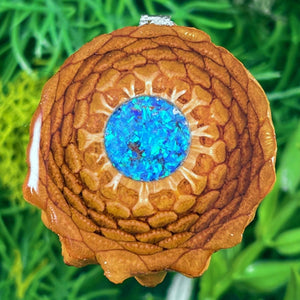 Our handmade pendants are crafted from sustainably wild-gathered Knobcone Pinecones. Every Aura Pinecone is carefully dried, aged, and cross-sectioned before being meticulously designed.