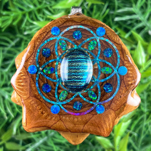 Our handmade pendants are crafted from sustainably wild-gathered Knobcone Pinecones. Every Aura Pinecone is carefully dried, aged, and cross-sectioned before being meticulously designed.