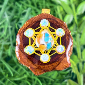 Our handmade pendants are crafted from sustainably wild-gathered Knobcone Pinecones. Every Aura Pinecone is carefully dried, aged, and cross-sectioned before being meticulously designed.
