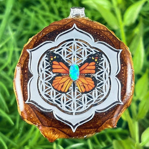 Our handmade pendants are crafted from sustainably wild-gathered Knobcone Pinecones. Every Aura Pinecone is carefully dried, aged, and cross-sectioned before being meticulously designed.