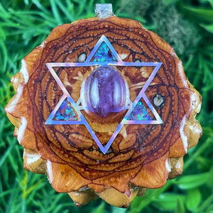 Our handmade pendants are crafted from sustainably wild-gathered Knobcone Pinecones. Every Aura Pinecone is carefully dried, aged, and cross-sectioned before being meticulously designed.