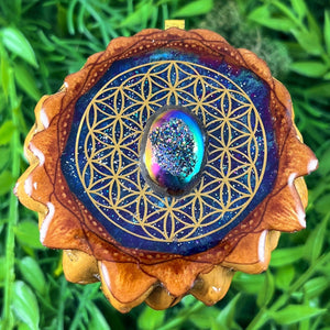Our handmade pendants are crafted from sustainably wild-gathered Knobcone Pinecones. Every Aura Pinecone is carefully dried, aged, and cross-sectioned before being meticulously designed.