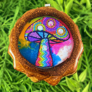 Our handmade pendants are crafted from sustainably wild-gathered Knobcone Pinecones. Every Aura Pinecone is carefully dried, aged, and cross-sectioned before being meticulously designed.