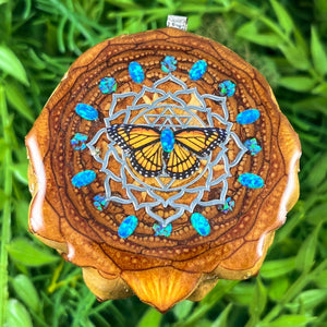 Our handmade pendants are crafted from sustainably wild-gathered Knobcone Pinecones. Every Aura Pinecone is carefully dried, aged, and cross-sectioned before being meticulously designed.