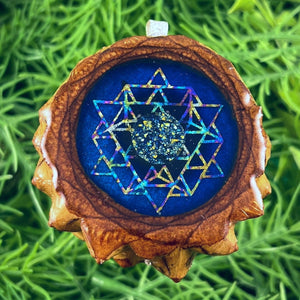 Our handmade pendants are crafted from sustainably wild-gathered Knobcone Pinecones. Every Aura Pinecone is carefully dried, aged, and cross-sectioned before being meticulously designed.