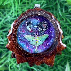 Our handmade pendants are crafted from sustainably wild-gathered Knobcone Pinecones. Every Aura Pinecone is carefully dried, aged, and cross-sectioned before being meticulously designed.