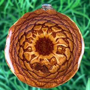 Our handmade pendants are crafted from sustainably wild-gathered Knobcone Pinecones. Every Aura Pinecone is carefully dried, aged, and cross-sectioned before being meticulously designed.