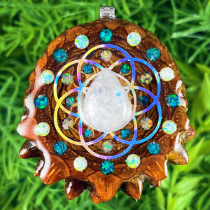 Our handmade pendants are crafted from sustainably wild-gathered Knobcone Pinecones. Every Aura Pinecone is carefully dried, aged, and cross-sectioned before being meticulously designed.