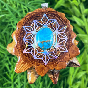 Our handmade pendants are crafted from sustainably wild-gathered Knobcone Pinecones. Every Aura Pinecone is carefully dried, aged, and cross-sectioned before being meticulously designed.