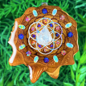 Our handmade pendants are crafted from sustainably wild-gathered Knobcone Pinecones. Every Aura Pinecone is carefully dried, aged, and cross-sectioned before being meticulously designed.