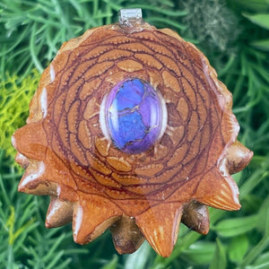 Our handmade pendants are crafted from sustainably wild-gathered Knobcone Pinecones. Every Aura Pinecone is carefully dried, aged, and cross-sectioned before being meticulously designed.