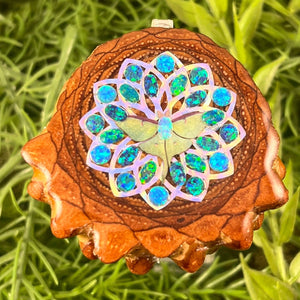 Our handmade pendants are crafted from sustainably wild-gathered Knobcone Pinecones. Every Aura Pinecone is carefully dried, aged, and cross-sectioned before being meticulously designed.