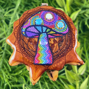 Our handmade pendants are crafted from sustainably wild-gathered Knobcone Pinecones. Every Aura Pinecone is carefully dried, aged, and cross-sectioned before being meticulously designed.