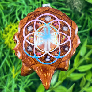 Our handmade pendants are crafted from sustainably wild-gathered Knobcone Pinecones. Every Aura Pinecone is carefully dried, aged, and cross-sectioned before being meticulously designed.