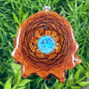 Our handmade pendants are crafted from sustainably wild-gathered Knobcone Pinecones. Every Aura Pinecone is carefully dried, aged, and cross-sectioned before being meticulously designed.