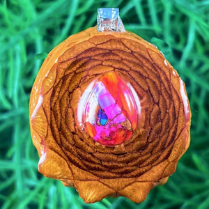 Our handmade pendants are crafted from sustainably wild-gathered Knobcone Pinecones. Every Aura Pinecone is carefully dried, aged, and cross-sectioned before being meticulously designed.