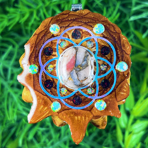 Our handmade pendants are crafted from sustainably wild-gathered Knobcone Pinecones. Every Aura Pinecone is carefully dried, aged, and cross-sectioned before being meticulously designed.