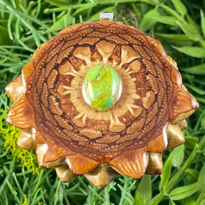 Our handmade pendants are crafted from sustainably wild-gathered Knobcone Pinecones. Every Aura Pinecone is carefully dried, aged, and cross-sectioned before being meticulously designed.