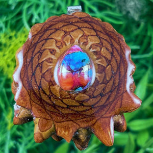 Our handmade pendants are crafted from sustainably wild-gathered Knobcone Pinecones. Every Aura Pinecone is carefully dried, aged, and cross-sectioned before being meticulously designed.