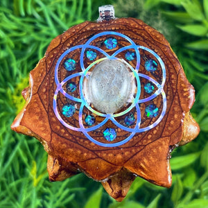 Our handmade pendants are crafted from sustainably wild-gathered Knobcone Pinecones. Every Aura Pinecone is carefully dried, aged, and cross-sectioned before being meticulously designed.