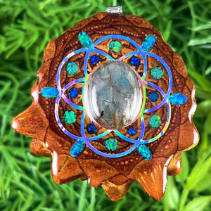 Our handmade pendants are crafted from sustainably wild-gathered Knobcone Pinecones. Every Aura Pinecone is carefully dried, aged, and cross-sectioned before being meticulously designed.