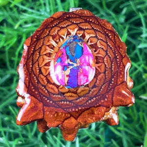 Our handmade pendants are crafted from sustainably wild-gathered Knobcone Pinecones. Every Aura Pinecone is carefully dried, aged, and cross-sectioned before being meticulously designed.