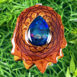 Our handmade pendants are crafted from sustainably wild-gathered Knobcone Pinecones. Every Aura Pinecone is carefully dried, aged, and cross-sectioned before being meticulously designed.