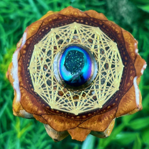 Our handmade pendants are crafted from sustainably wild-gathered Knobcone Pinecones. Every Aura Pinecone is carefully dried, aged, and cross-sectioned before being meticulously designed.