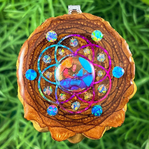 Our handmade pendants are crafted from sustainably wild-gathered Knobcone Pinecones. Every Aura Pinecone is carefully dried, aged, and cross-sectioned before being meticulously designed.