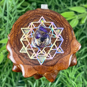 Our handmade pendants are crafted from sustainably wild-gathered Knobcone Pinecones. Every Aura Pinecone is carefully dried, aged, and cross-sectioned before being meticulously designed.