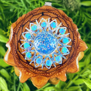 Our handmade pendants are crafted from sustainably wild-gathered Knobcone Pinecones. Every Aura Pinecone is carefully dried, aged, and cross-sectioned before being meticulously designed.